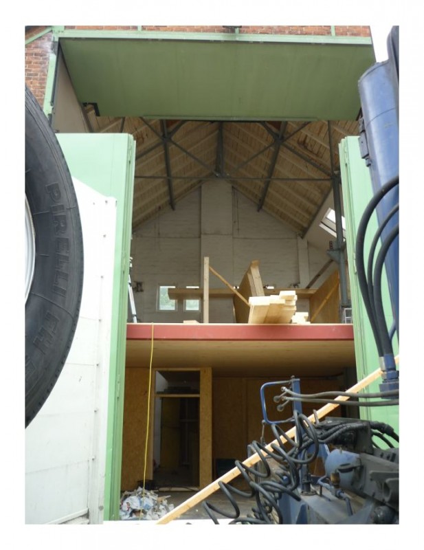 In die alte Produktionshalle der Firma werden im laufenden Betrieb neue Büroflächen eingebaut.