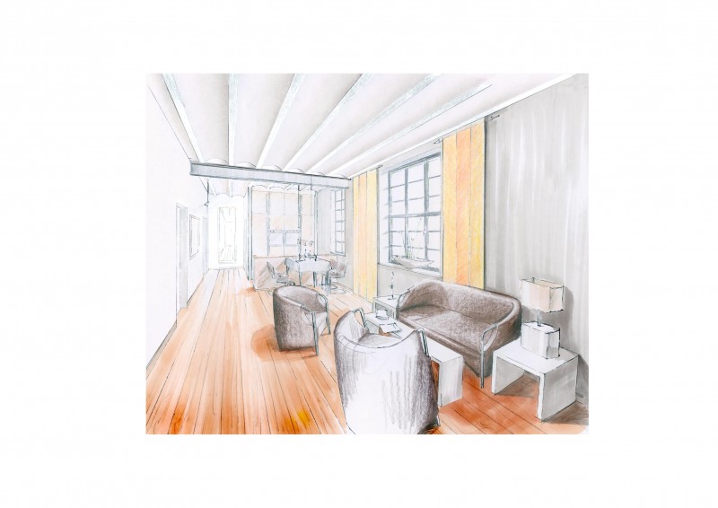 Perspektive Zimmertyp 2 < 5 / 7 > Umbau einer Fabrikanlage zu Senoirenwohnungen Pinneberg, 2006 Grundrissentwiclung, Innenarchitektur für Lindschulte u. Partner Zusammenarbeit mit Jörg Schmitter