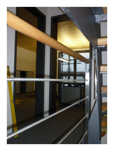 Hierzu wird das Gebäude bis auf die Stahlgrundkonstruktion teilentkernt, und im Holzständerbau, als Haus in Haus Lösung, um zwei Geschosse Büroflächen erweitert. Der bereitsvorhandene Büroflächen im Erdgeschoss werden nach Fertigstellung des Neubaus und Teilumzug modernisiert.